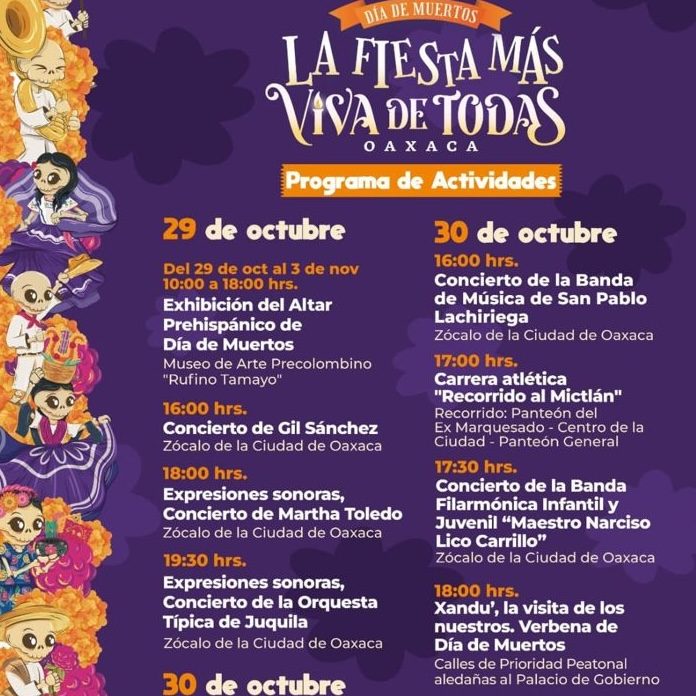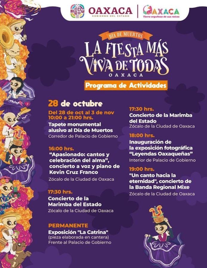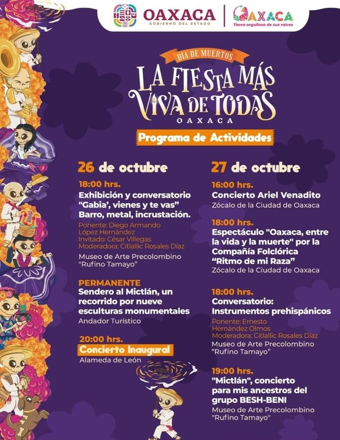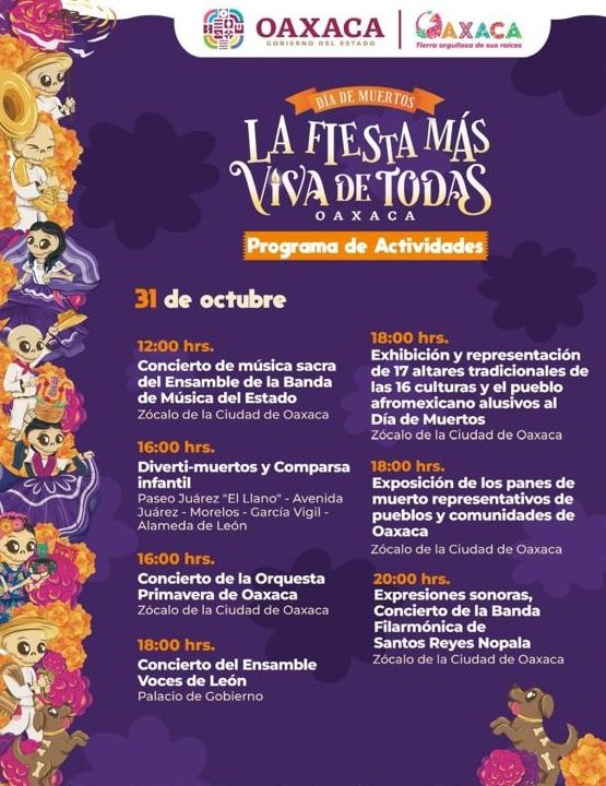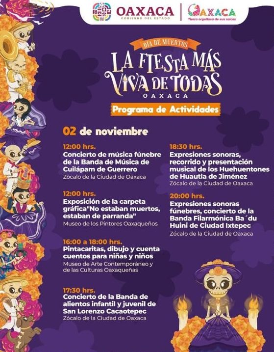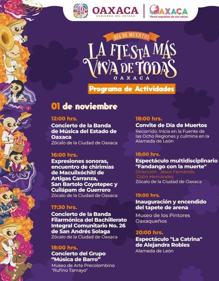 Why travel to Oaxaca for the Day of the Deads? Oaxaca offers from October 26th to November 3nd more than 140 events, almost all free, a broad program of cultural activities, including traditional parades, altars, sand carpet exhibitions, tours of cemeteries, gastronomic fairs and displays of Day of the Dead expressions from across the eight regions of Oaxaca.