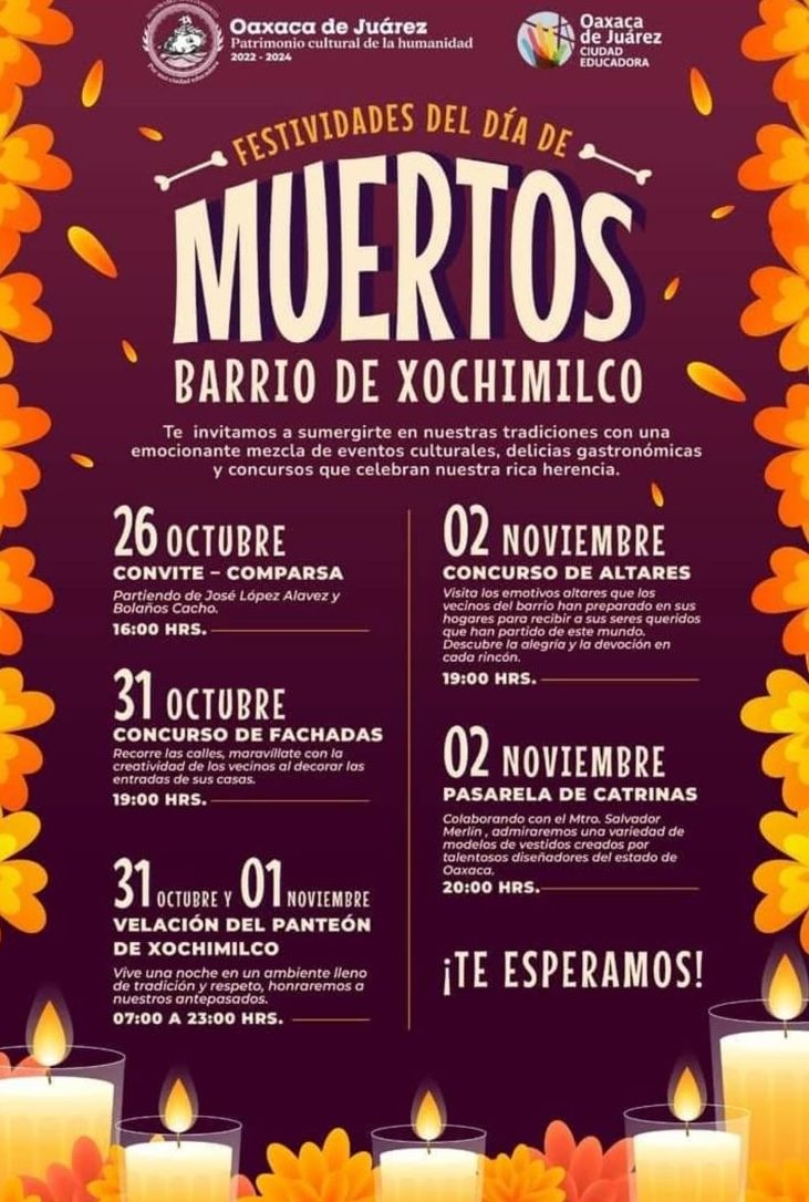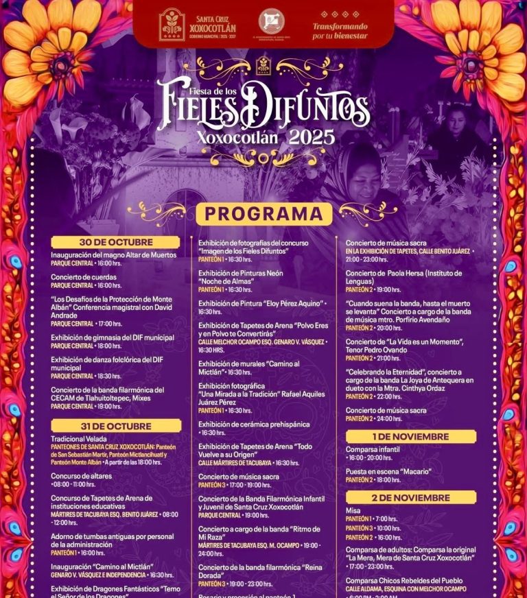 October 31: Santa Cruz Xoxocotlán. Famous for its candlelit vigils in the cemetery, where thousands of lights and flowers transform the graveyard into a shining sea of remembrance